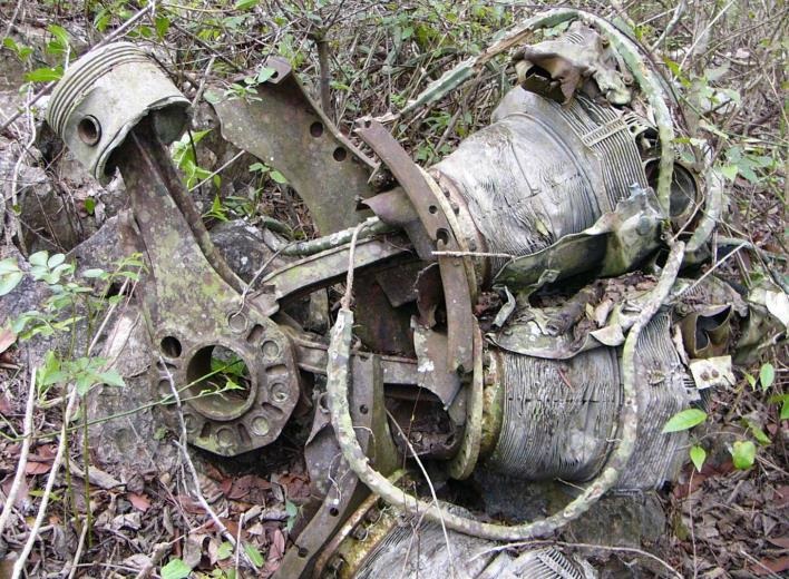 Fragmentos de alas estaban en sitios distintos uno del otro; enseguida un pistón con residuos del motor, un carburador encima de una de las alas, por allá lo que parecía un pedazo del tren de aterrizaje, con su sistema hidráulico y partes de acero -en verdad- inoxidable a pesar del tiempo de abandono. Entre varios restos las lagartijas hicieron nido pero huyeron ante nuestra presencia, en otros, la vegetación se entrelazó caprichosamente.