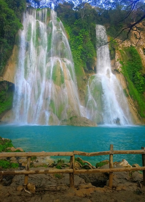 Se llega tras dejar la ruta asfaltada y avanzar tres kilómetros y medio, primero en una ruta antigua llena de curvas (hacia el poniente), y luego por un transitable sendero de terracería entre cañaverales. Después del paso por la taquilla, trescientos metros de escalinatas en piedra nos dejan frente a “Minas viejas” con su caída de 45 metros, cuyas aguas reposarán enseguida en la apacibilidad de la inigualable tonalidad azulosa de sus lagunas.