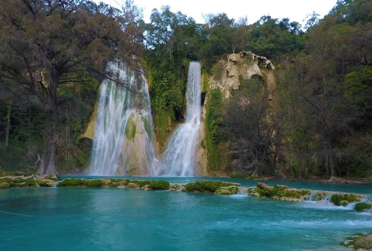 Le llaman “La lloviznosa”, aunque también la denominan “El acuario”, lo cual sirve para distinguirla de otra “lloviznosa” en la Zona Media del estado. Es ahí donde empieza la experiencia del salto de cascada que ofertan los prestadores de servicios en este rumbo de El naranjo, entre caídas de intenso verdor y lagunas de azul turquesa, enmarcadas por una vegetación exuberante donde sobresalen majestuosos sabinos.